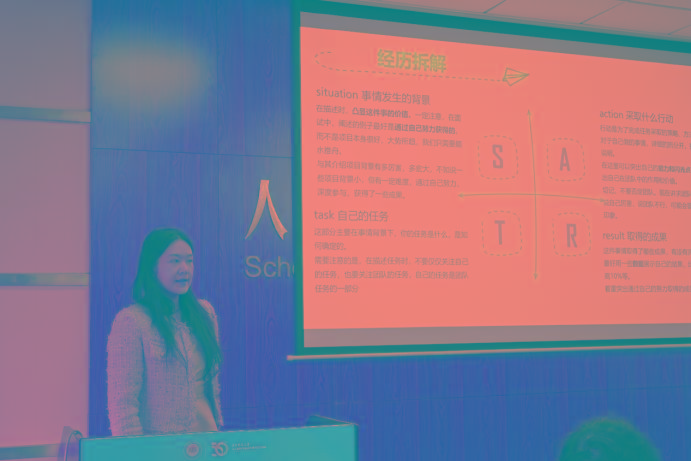 活動(dòng)開(kāi)始,王尉瑋首先進(jìn)行了以“簡(jiǎn)歷制作”為主題的培訓(xùn),并向同學(xué)們科普了“六險(xiǎn)二金”的相關(guān)知識(shí)。她從制作簡(jiǎn)歷的準(zhǔn)備工作入手,從簡(jiǎn)歷結(jié)構(gòu)和簡(jiǎn)歷內(nèi)容兩個(gè)方面舉例介紹了面向不同崗位的簡(jiǎn)歷制作方法。