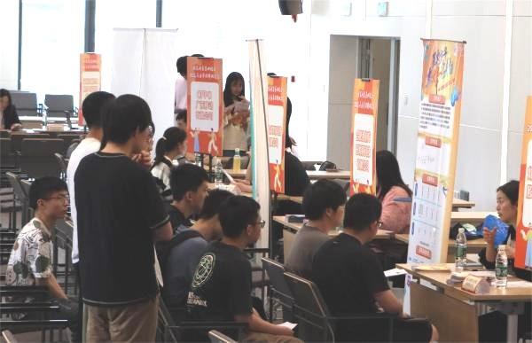 下午2點,雙選會正式開始,兩校同學(xué)進(jìn)場絡(luò)繹不絕,現(xiàn)場人潮涌動,不少單位的展位前排起長龍。同學(xué)們“有備而來”,帶著簡歷完成現(xiàn)場投遞,并與單位就崗位具體的能力需求、工作內(nèi)容、后續(xù)培養(yǎng)等展開細(xì)致的溝通。