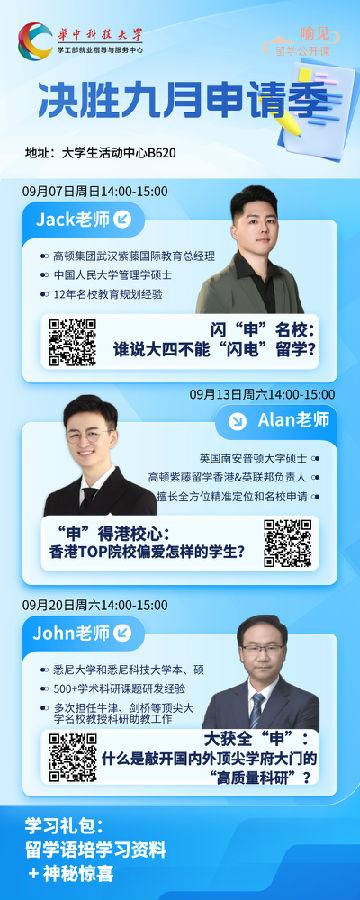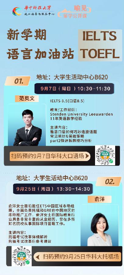 華中科技大學(xué)9月“喻見”留學(xué)公開課:決勝申請季+語言加油站!