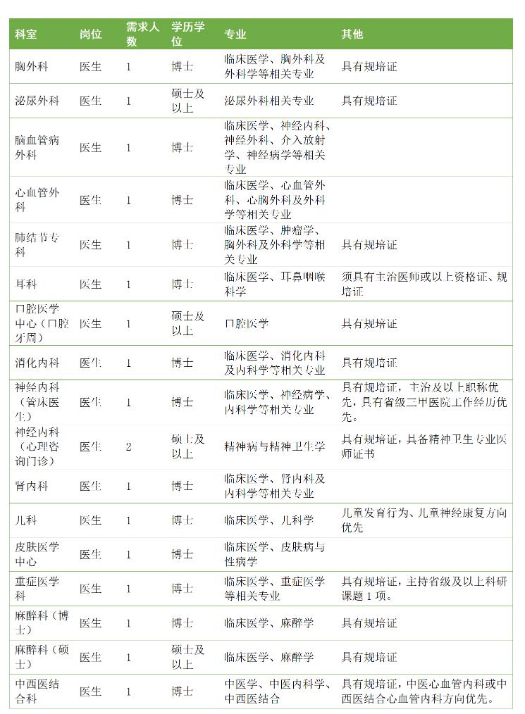 6. 醫師崗位要求具有醫師資格證,臨床醫生崗位執業證類別:臨床類別;