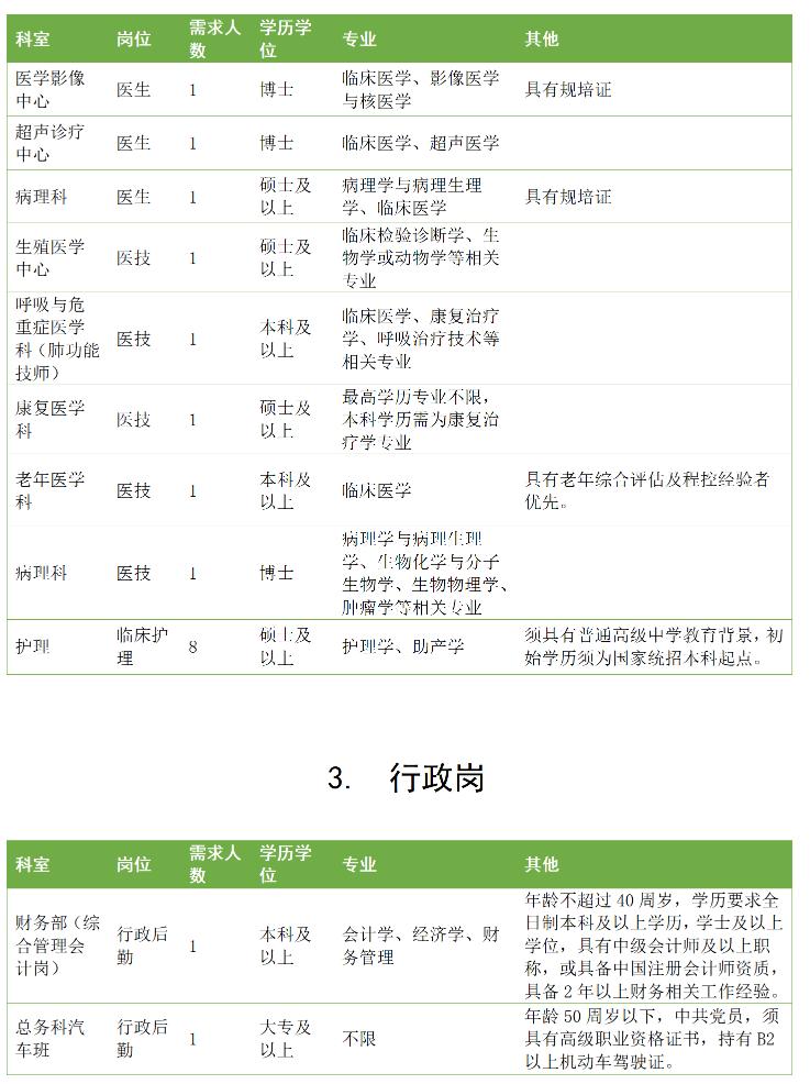 5. 醫生、醫技崗位初始學歷須為國家統招本科起點,護理崗位要求具有普通高級中學教育背景,初始學歷須為國家統招本科起點;
