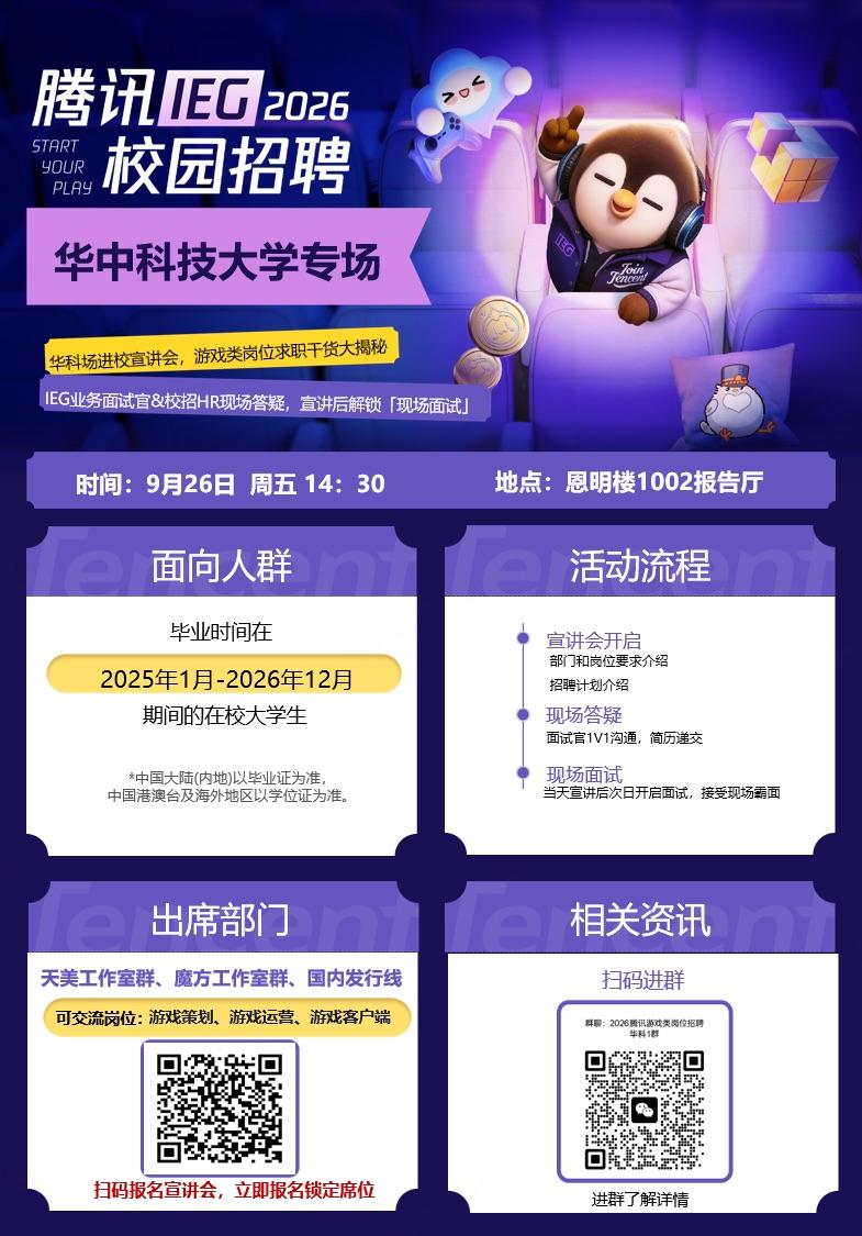 騰訊IEG 2026校園招聘宣講會·華中科技大學(xué)站