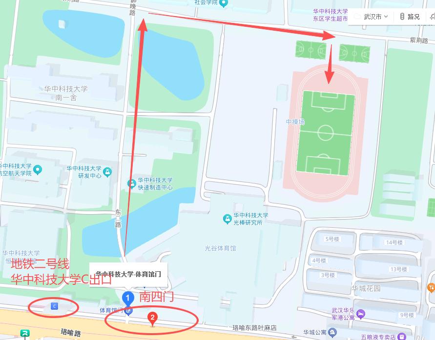 當(dāng)天入校人數(shù)眾多,建議用人單位及外校學(xué)生步行入校:可乘坐2號線至華中科技大學(xué)站C口出站,外校同學(xué)請持簡歷或?qū)W生卡,從南四門、光谷體育館正門進(jìn)校,入校后由志愿者引導(dǎo)步行至?xí)觯ㄖ本€距離約150米)。