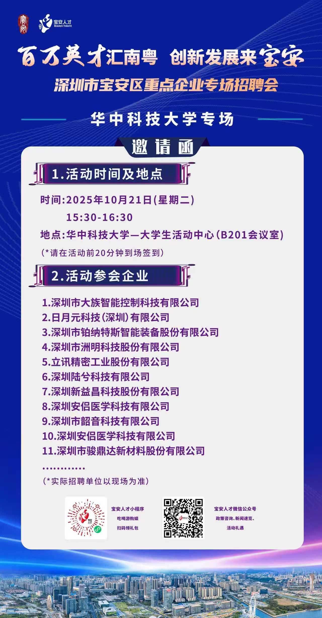 深圳市寶安區重點企業專場招聘會(華中科技大學站)